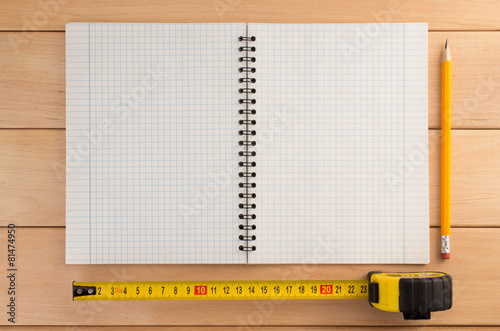 tape measure and pencil on wood