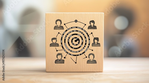 Target Icon on Wooden Block with Connecting Lines to Human Icons, Overlaid with Digital Data Flow Symbols like Binary Code and Data Exchange Arrows