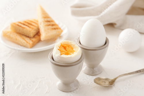 Tasty boiled eggs on table