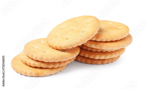 Tasty crispy round crackers isolated on white