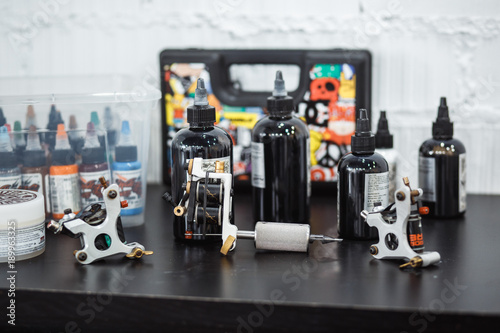 tattoo gun and some ink for tattoo.