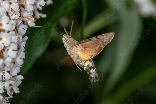 Taubenschwänzchen im Flug am Sommerflieder