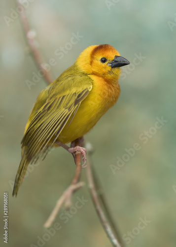 Taveta Golden Weaver (Ploceus castaneiceps) perched on tree branch