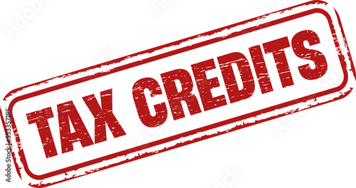 Tax credits rubber stamp. Tax credits Stamp vintage old red color texture frame