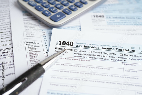 Tax form 1040 U.S. Individual Income Tax Return, business finance.