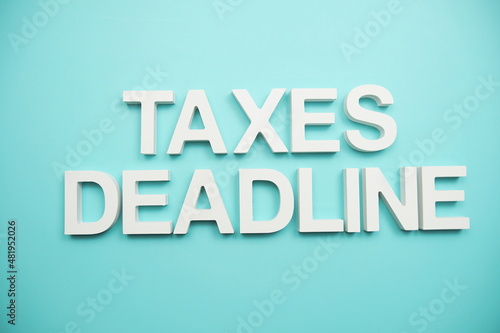 Taxes Deadline alphabet letters on blue background