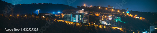 Tbilisi, Georgia. Night View Of complex of buildings, residence in Sololaki Ridge owned by the Georgian tycoon Boris (Bidzina) Ivanishvili in Tbilisi. Architect Shin Takamatsu.