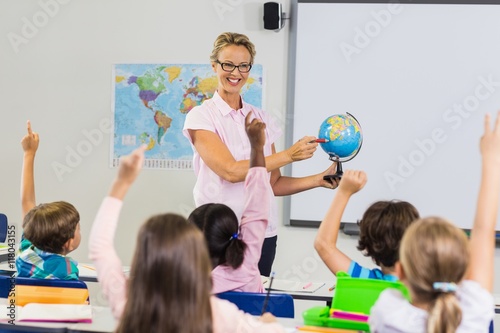 Teacher having lesson with a globe