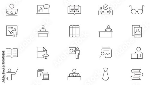 Teacher line icon set. Knowledge, E-learning, video tutorial, study, school, university, webinar, teacher, school, creativity, wisdom line icon set. UI thin line icon pack.