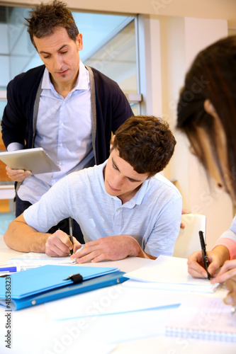 Teacher watching students writing exam