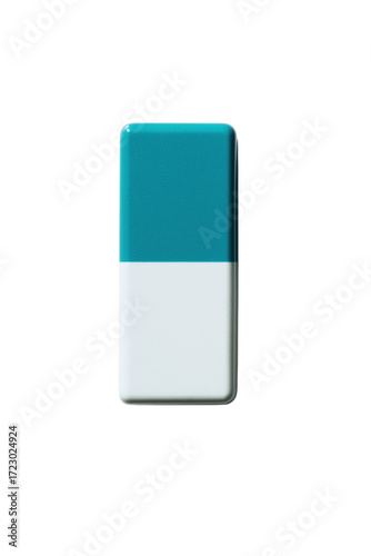 Teal and white rectangular eraser isolated on a transparent background stationery office