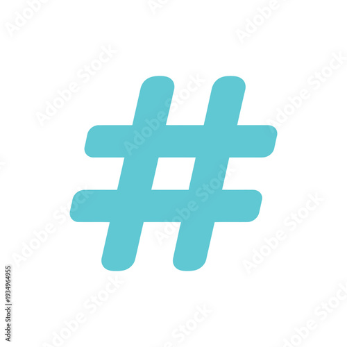 Teal hashtag symbol on white background blue