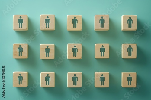 Teal Minimalist Background with Wooden Cubes and Person Symbols