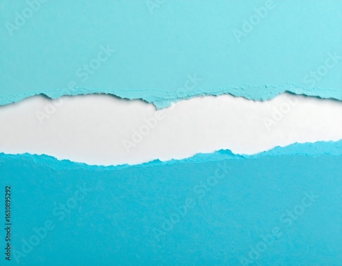 Teal paper ripped open, blank white center