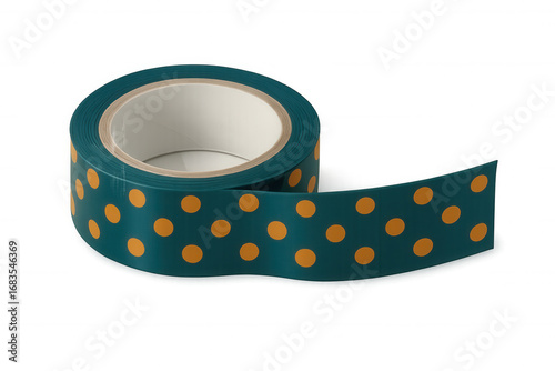 Teal washi tape with orange polka dots unrolled on a transparent background, perfect for scrapbooking, diy, and craft projects