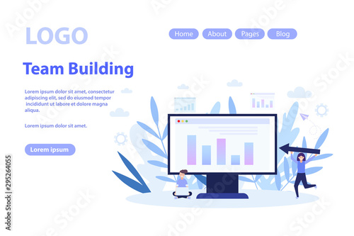 Team building concept web page.Flat vector illustration isolated on white background. Can use for web banner, infographics, web page.