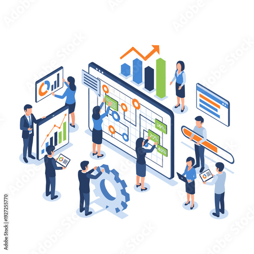 Team collaborating on data analysis and business strategy.