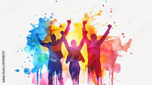 Team collaboration success flat design front view theme achievement watercolor vivid