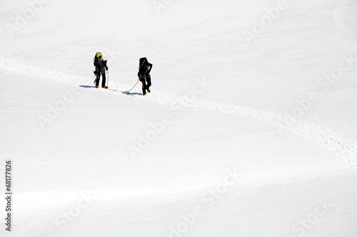 Team of alpinists crossing a glacier