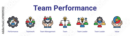 Team Performance web icon vector illustration concept with icon of Performance,Teamwork,Team Management,Team,Team Leader,Team Leader,Value,in modern flat vector style.