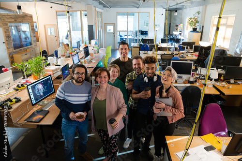 Team posing in office, smiling
