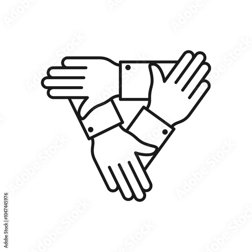 Teamwork Alliance Partnership Help Together Hand Silhouette and Line Icon. Collaboration Group Team