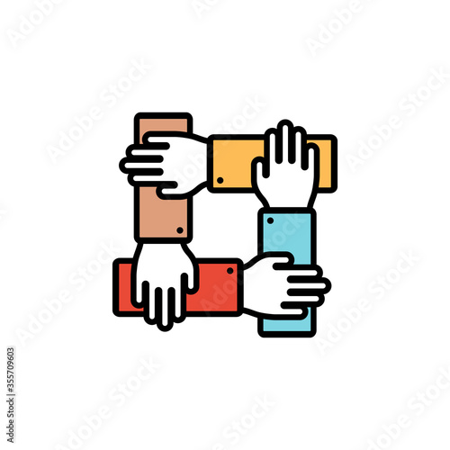 Teamwork icon. Group, business, hand. Line vector icon on isolated background. Eps 10 vector