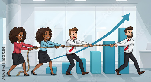 Teamwork Makes the Dream Work: Pulling Together for Success in the Business World Illustration with Positive Growth and Determination Illustrated.