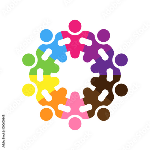 Teamwork people forming a puzzle gear. Vector isolated on white background.