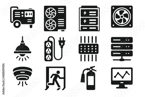 Tech generators smoke battery power vector emergency organizers backups icon systems icons