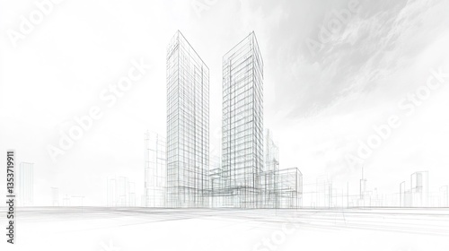 Technical Architectural Drawing of a Modern Skyscraper Design