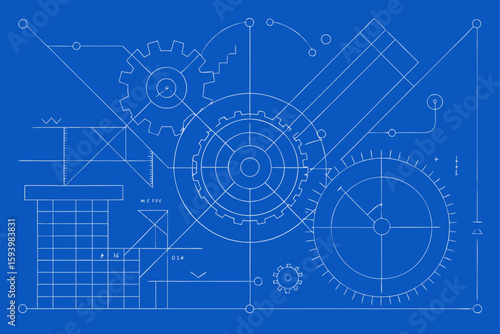 Technical Blueprint Background with Fine Line Art
