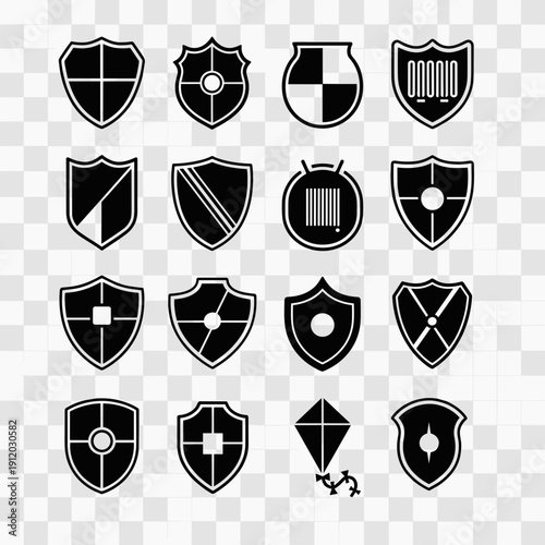 Technical security shield icons and emblems set