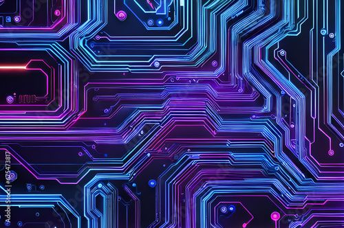Technological cyber background design, neon light, bright dark illustration, future tech style, Generative AI