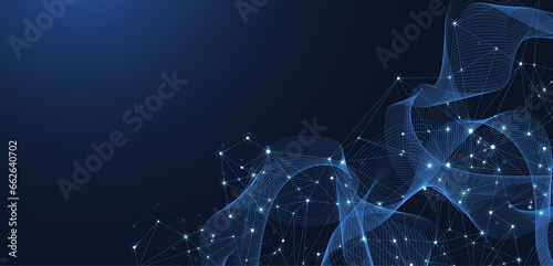 Technology abstract lines and dots connection background. Connection digital data and big data concept. Digital data visualization, illustration