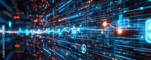 Technology adoption analysis, digital icons and trend lines, 3D illustration