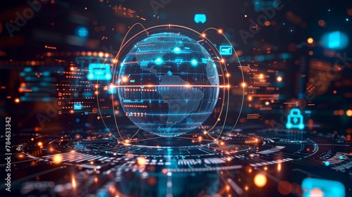 Technology and Innovation: A 3D vector illustration of a globe surrounded by digital devices