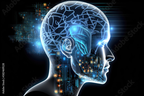 Technology and innovation concept, Abstract digital human head, Artificial intelligence concept, Generative AI