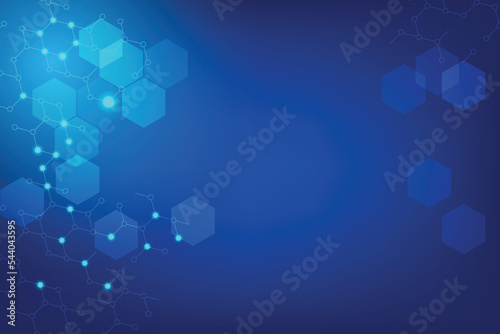 Technology Blue Background with hexagon structure connected by wire and dot. Deep data algorithm with future Concept.