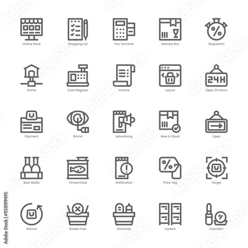 Techy Shopping icon pack for your website, mobile, presentation, and logo design. Techy Shopping icon outline design. Vector graphics illustration and editable stroke.