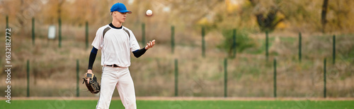 Teenage boy demonstrating skill while playing baseball on a sunny field