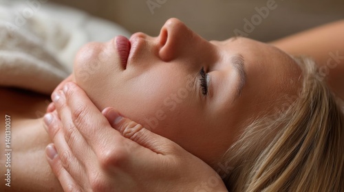 Teenage girl receiving facial massage.