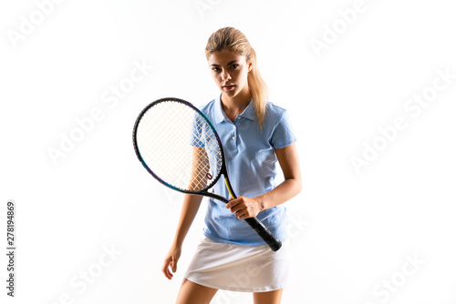 Teenager tennis player girl over isolated white background
