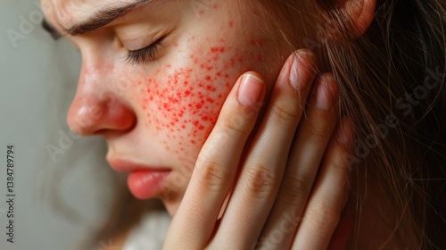 Teenager's face, red rash, skin problem, indoors, healthcare