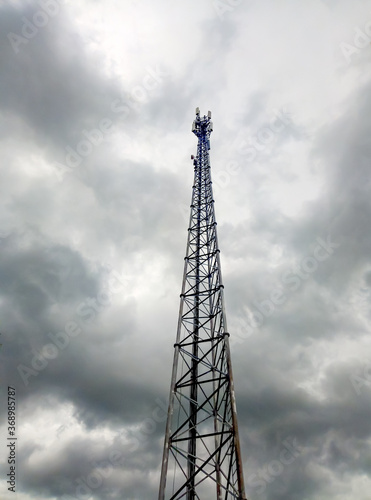 Telecommunication antenna In the evening the gray sky backdrop