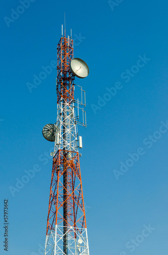 Telecommunication Radio Antenna and Satelite Tower with blue sky