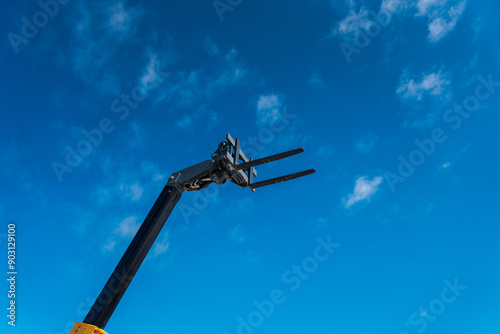 Telescopic lift with forklift raised up in the air for lifting construction project