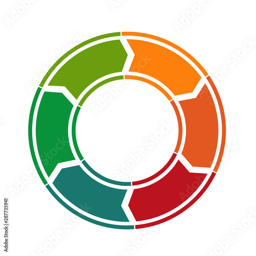 Template for infographics. Colored arrows in a circle. 6 parts. Background white