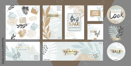 Template for wedding, advertising banners, invitations, posts, covers, business cards, posters in tropical style.
