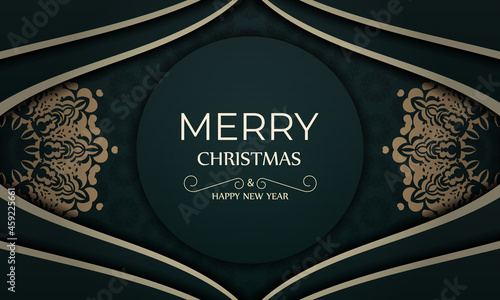 Template Greeting card Merry christmas dark green color with vintage yellow pattern